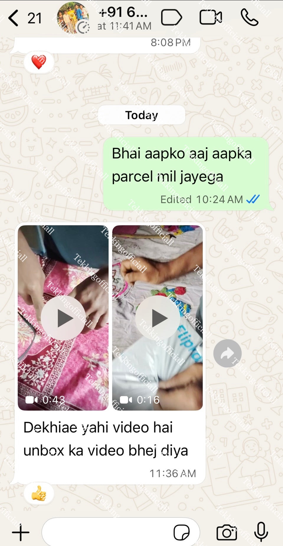 Packing Photos & Live Video of every Order are send to the Customer and Also uploaded on Instagram